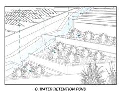 Water elements and plants are integrated to create a microclimate. Also, water retention ponds along the fragmented farm's slope, improving water distribution efficiency