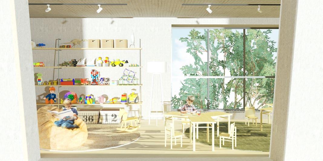 Ground floors are semi-public space. A split slab system to separate community amenities from residential floors — including daycare centers, co-working spaces and rooftop gardens.