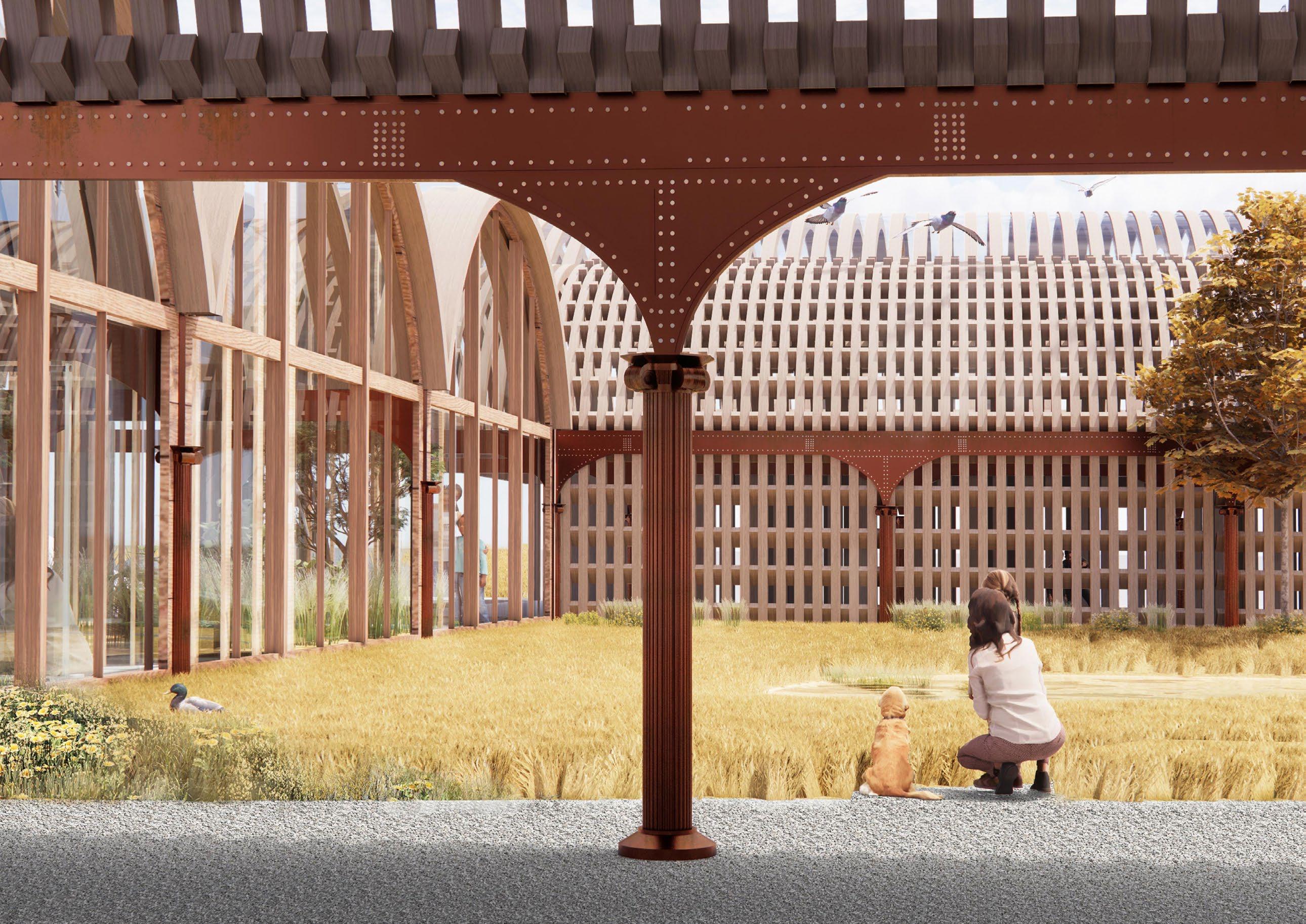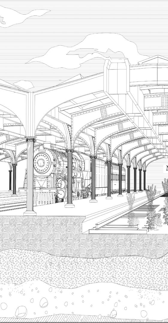 On the left is the current state of the station, with weeds and phragmatics as the main feature. On the right is the spartina plant, which uses the original structure and track height difference to collect water and cultivate spartina