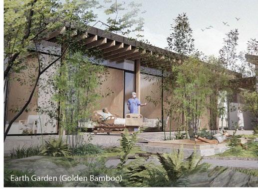 This design integrates scientific principles of natural therapy, using the four elements-earth, water, fire, and windto create four distinct healing gardens with immersive natural experiences.