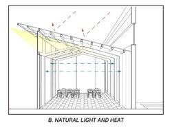 Slanted roofs with openings, and pitched CLT wood structure not only allows natural ventilation and light. Wood material also absorb the energy to keep the place warm