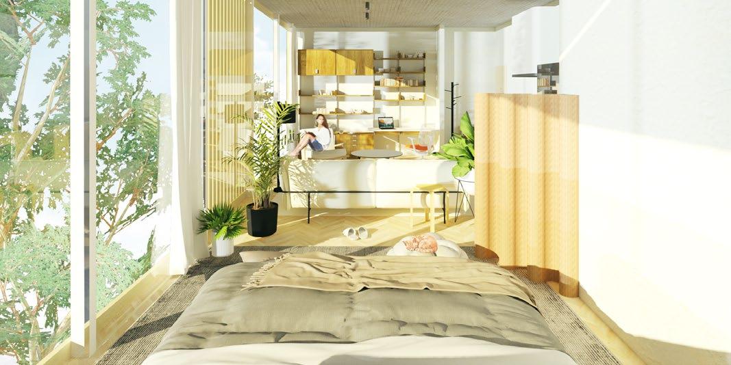 These buildings primarily house studios and one-bedroom units. community amenities— daycare centers, co-working spaces, laundry rooms, and rooftop gardens.