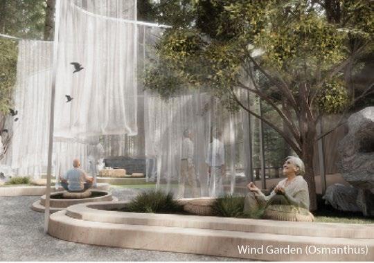 This design integrates scientific principles of natural therapy, using the four elements-earth, water, fire, and windto create four distinct healing gardens with immersive natural experiences.