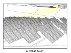 Our design's sustainability features encompass various elements, such as cross ventilation for natural cooling using operable windows and louvers, passive solar shading to optimize sunlight, geothermal water heat pumps powered by rainwater collection, and pv panels installed on the roof. Furthermore, the building's very structure incorporates the recycling of construction waste, effectively counterbalancing its own carbon footprint.