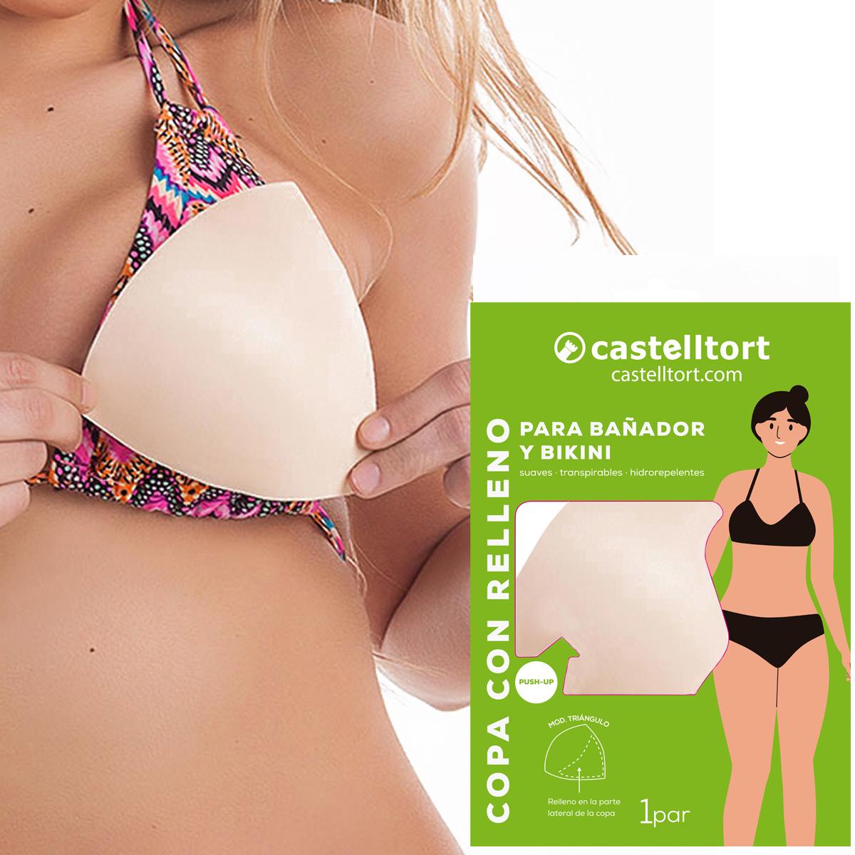 Copas de Sujetador o Bikini con relleno y sin costuras. TRIANGULAR, efecto PUSH UP y es HIDROREPELENTE.