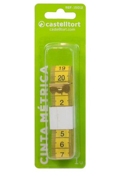 · Cinta doble cara con centímetros en una cara y pulgadas en la otra.