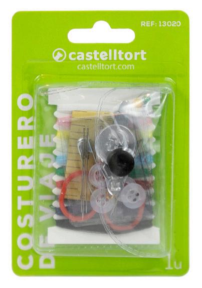 · Hilos, tijeras, botones y mucho más, todo ello en una funda sobre plástico con cierre.