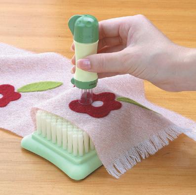 Esta alfombrilla-cepillo es una excelente alfombrilla para trabajar con la herramienta de agujas para afieltrar, ya que facilita la labor haciendo que las fibras de los apliques queden bien entremezcladas con las fibras del tejido donde se realizó el trabajo.
