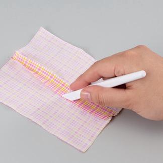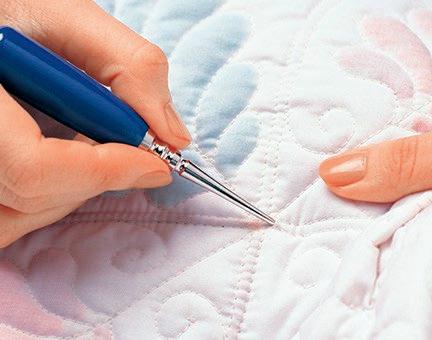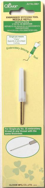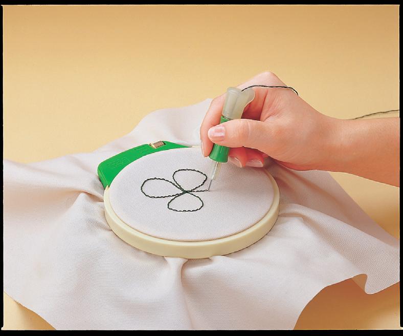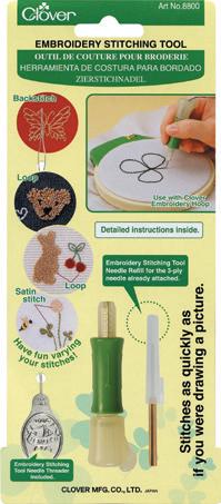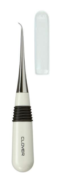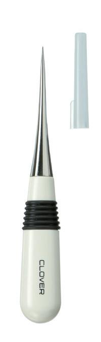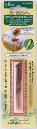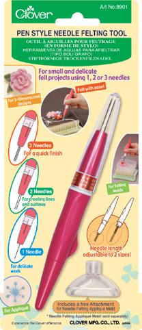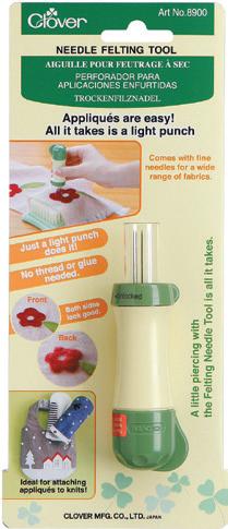 ¡No necesitará hilo ni pegamento! La herramienta de agujas para afieltrar de Clover tiene cinco agujas de púas que atrapan las fibras de lana en mecha y las empuja hacia la parte inferior del tejido. Las fibras de lana en mecha se fijan permanentemente sin utilizar pegamento ni coserlas. La herramienta incluye una cubierta con un práctico cierre para protegerla y guardarla.