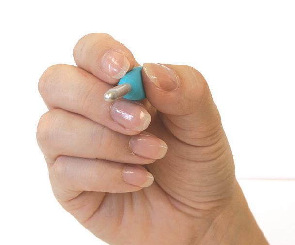 Debido a que la posición del pulgar es plana, fija la dirección de la aguja de ganchillo.