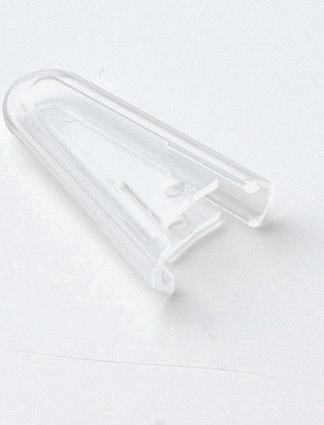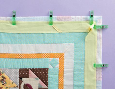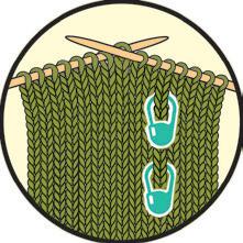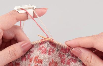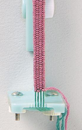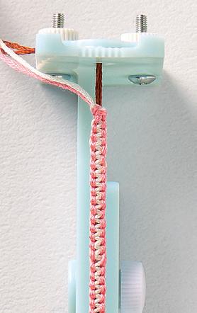 Cuando la trenza llegue al final de las agujas, ponga la pieza de sujeción en la parte superior.