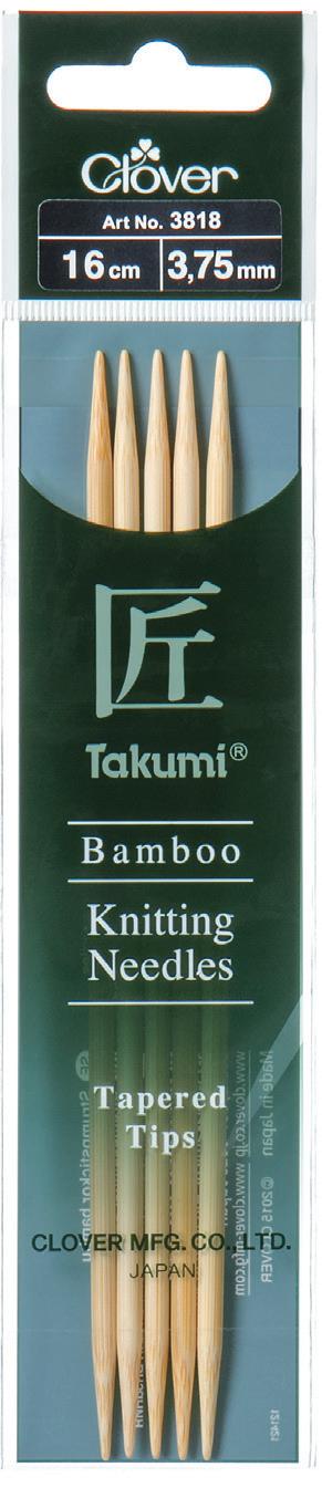 Las agujas de tejer de bambu Takumi han sido creadas como resultado de largos años de experiencia y la tecnología de fabricación de Clover que maximiza las cualidades del mejor bambú natural, haciendo que sea más fácil tejer y transmitir el sentimiento de quien lo realiza. Su superficie lisa y su cómodo ajuste son el resultado del esfuerzo hecho por Clover para tener consideración en la necesidad de los tejedores. Sentirá la comodidad de estas agujas incluso después de largas horas del uso. Sienta y experimente estas agujas de tejer hechas de bambú natural cuidadosamente seleccionado.
