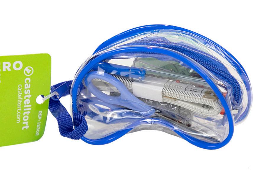 ·Hilos, tijeras, botones y mucho más, todo ello en una funda sobre de plástico con cierre.
