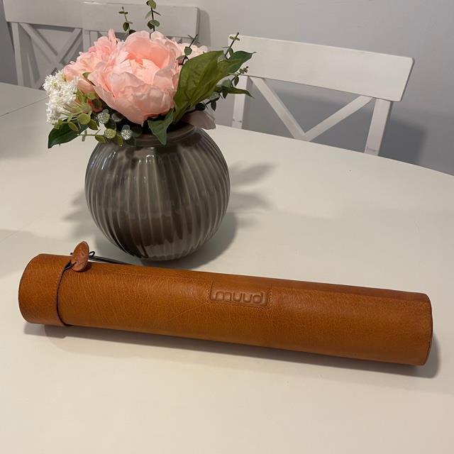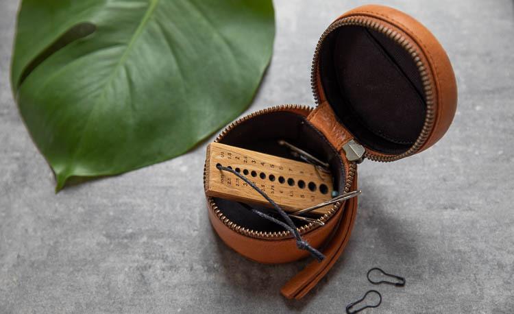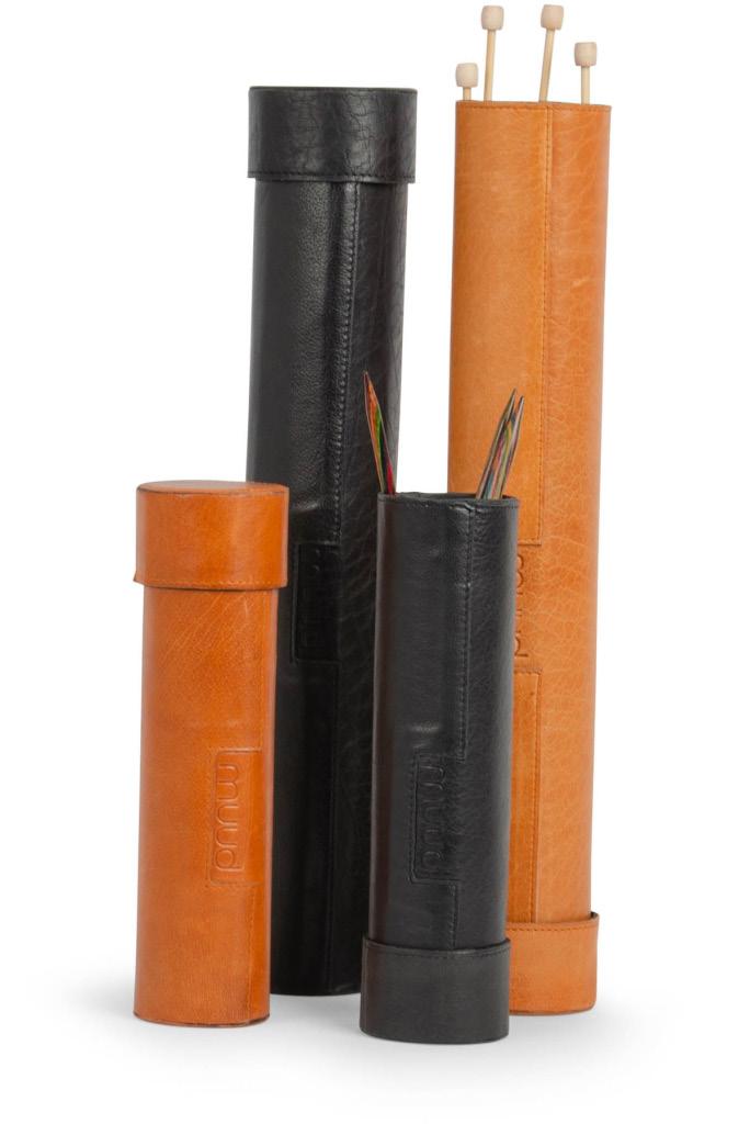 Almacenamiento cilíndrico para agujas: un bonito tubo de cuero para mantener tus utensilios de punto perfectamente organizados.