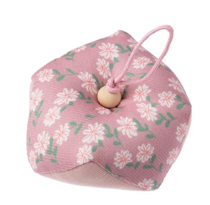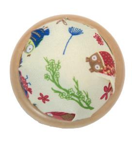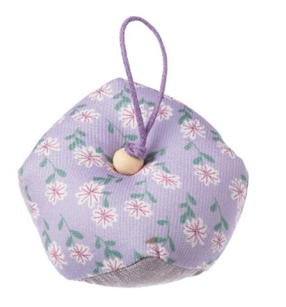 Un pequeño pero práctico complemento que embellece el interior de una bolsa de labores. Incluye cierre de botón a presión.