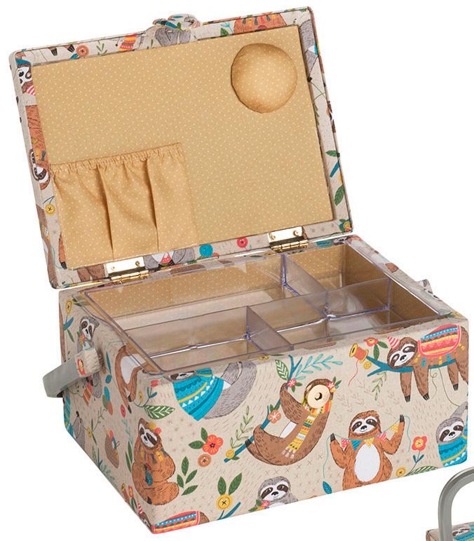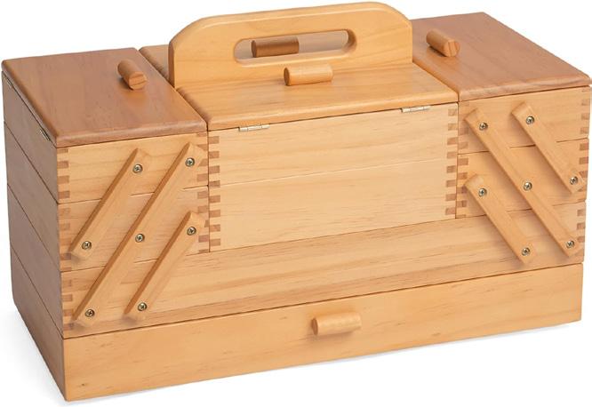 Caja de almacenamiento amplia y organizada, con tapa y compartimentos para todos nuestros utensilios de labor. Sirve para bordado, punto o ganchillo, y está fabricada en cuero de la mejor calidad.
