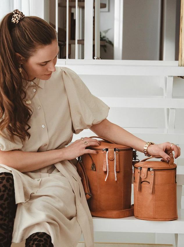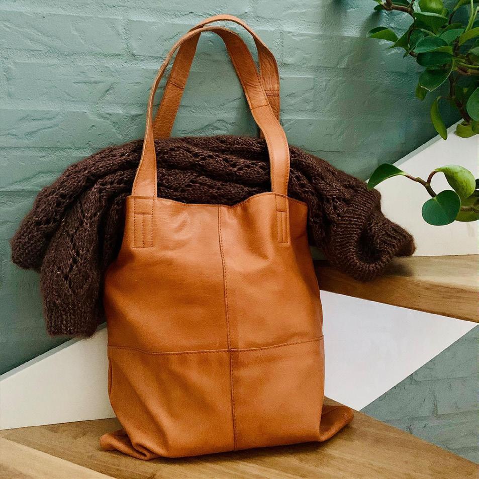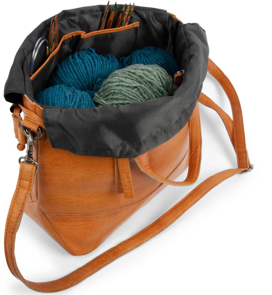 Una bolsa de cuero con correa para el hombro, perfecta para llevar contigo tus utensilios de punto y ganchillo. Un complemento hecho a mano que cuida tanto la calidad como la estética, el diseño y la funcionalidad.
