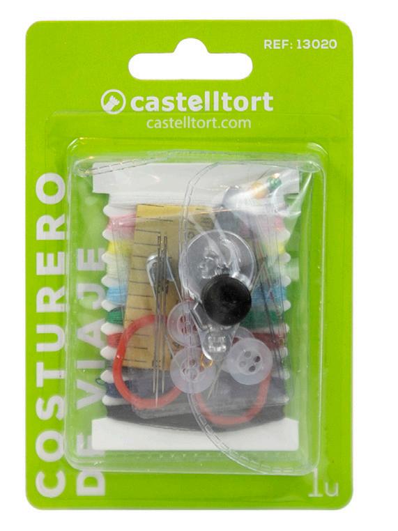 ·Hilos, tijeras, botones y mucho más, todo ello en una funda sobre plástico con cierre.