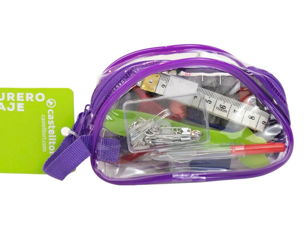·Hilos, tijeras, botones, imperdibles y mucho más todo ello en una funda sobre de plástico con cierre.