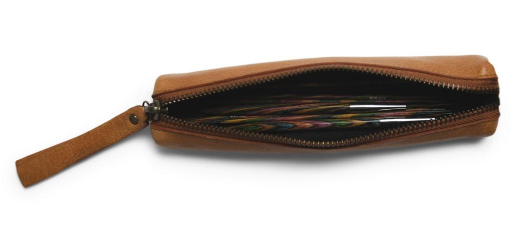 Estuche de piel con cierre de cremallera para ganchillos, lapiceros y bolígrafos.
