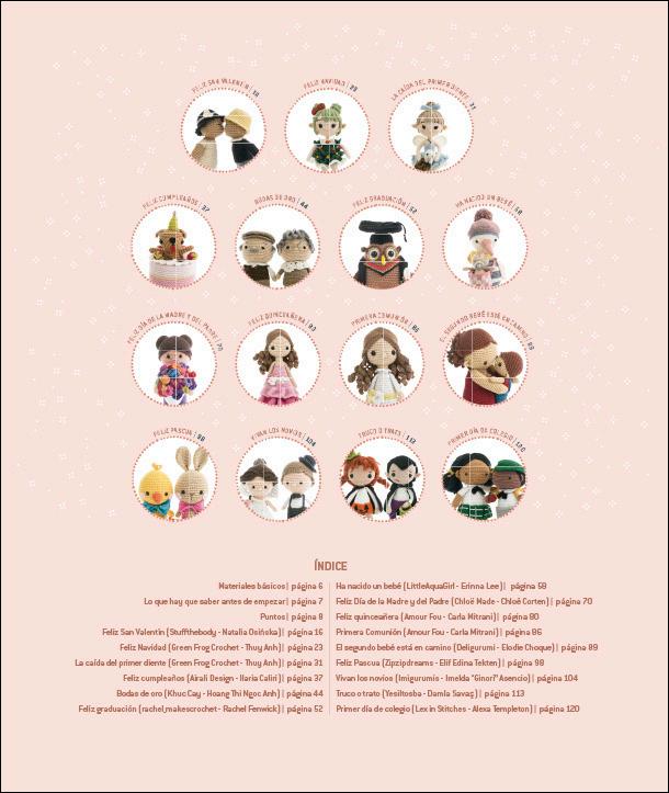 ¡Este magnífico libro fascinará a todos! Contiene muñecos Amigurumi perfectos para regalar a familiares y amigos en celebraciones y ocasiones especiales, como una boda, el primer día de colegio, el nacimiento de un bebé, un cumpleaños, la Primera Comunión, una graduación, el día de San Valentín… ¡No podrás resistirte a tejer a ganchillo todos estos divertidos personajes!