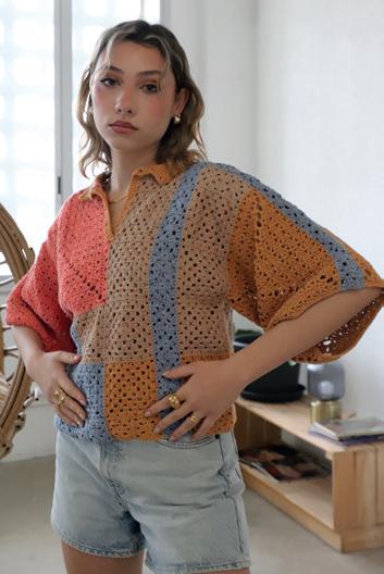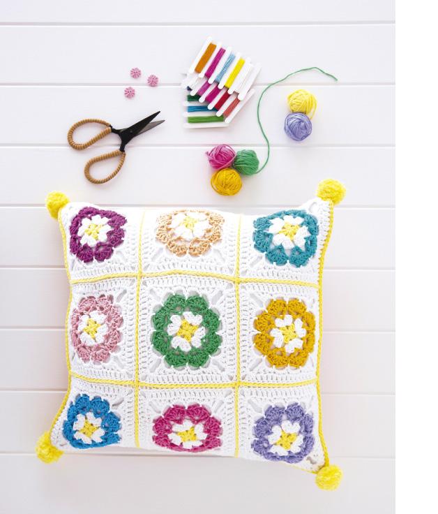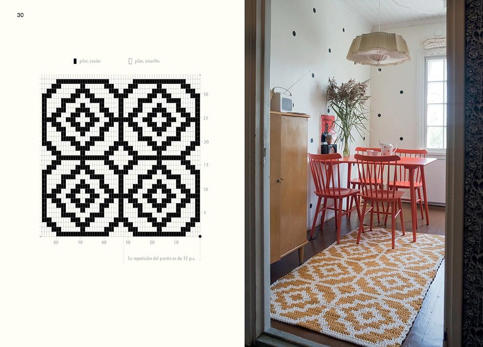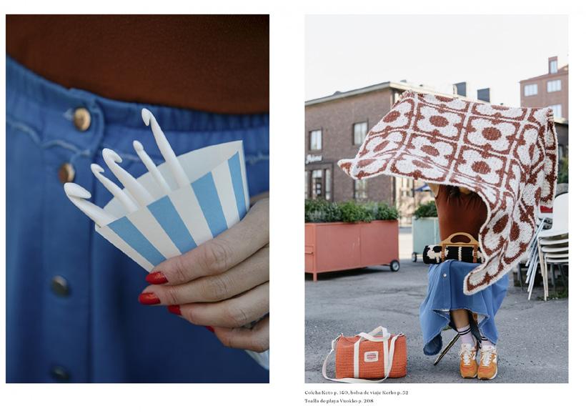 · Proyectos cool para tu casa o el aire libre. Teje nuevas piezas “multilugares” como alfombras, cojines, mantas, manteles o toallas con los estampados de Molla: desde cuadrados, lunares, rayas o trenzas, a sus celebradas cerezas o conos de helado de punto palomita.