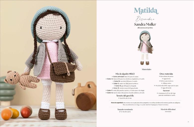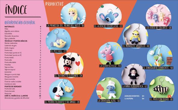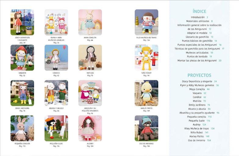 El libro contiene 15 proyectos de muñecos Amigurumi y sus accesorios, con la explicación paso a paso de las técnicas de ganchillo y de los puntos utilizados que facilitarán su realización.