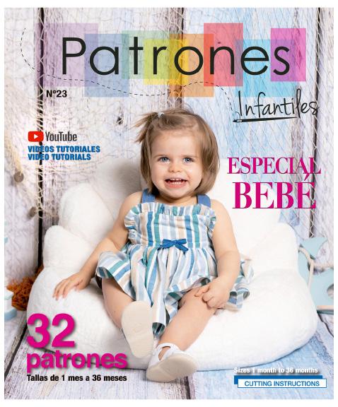 32 patrones de tallas 1 a 36 meses. Pliegos de patrones en el interior de la revista con vídeo tutorial para facilitar la confección de cada patrón.