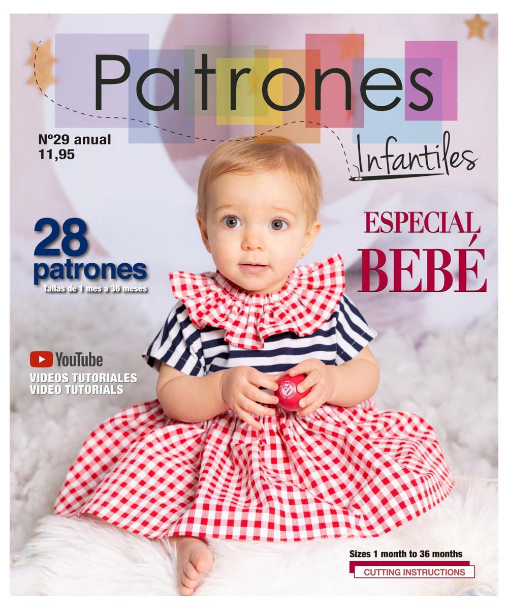 28 patrones de tallas 1 a 36 meses, Primavera/verano. Pliegos de patrones en el interior de la revista con vídeo tutorial para facilitar la confección de cada patrón.