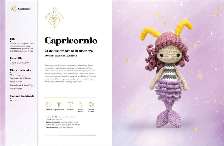 Ahora puedes tejer a ganchillo tu propia muñeca del Zodiaco con estos originales modelos de Amigurumi, diseñados por la reconocida autora Carla Mitrani. Esta colección de muñecas tejidas a ganchillo es la manera perfecta de disfrutar con tu signo del Zodiaco y de hacer regalos muy especiales que apreciarán tus familiares y amigos. Cada proyecto incluye cada uno de los símbolos de manera muy fácil de reconocer, por ejemplo: Aries es el carnero, Cáncer es el cangrejo, Leo el león, Libra la balanza, Escorpio el escorpión, Sagitario el arquero… También encontrarás datos interesantes sobre los signos del Zodiaco, como cuál es su elemento, el planeta reinante, la mejor cualidad de su carácter, el color de la suerte y la piedra de la suerte. Este libro muestra los materiales, los tipos de puntos de ganchillo utilizados y las técnicas para poder realizar los 12 proyectos paso a paso, y de esa manera conseguir tu propia muñeca con sus accesorios. ¡Que las estrellas te guíen para decidir por cuál empezar!