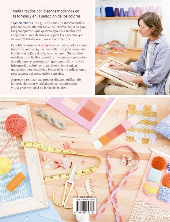 Este libro es una guía de consulta imprescindible para todos los aficionados a las labores, pensada para los principiantes que quieran aprender fácilmente a tejer en telares de madera y para los expertos que deseen profundizar en sus conocimientos. Incluye 7 proyectos con vivos colores para hacer: un marcapáginas, un collar, un posavasos, un broche, un cojín y dos tapices de pared. Todos ellos resultan muy fáciles de realizar, ya que la explicación de cada uno se presenta con gran precisión y mucha información sobre los materiales y las técnicas, mostradas con detalladas fotografías y explicaciones paso a paso.