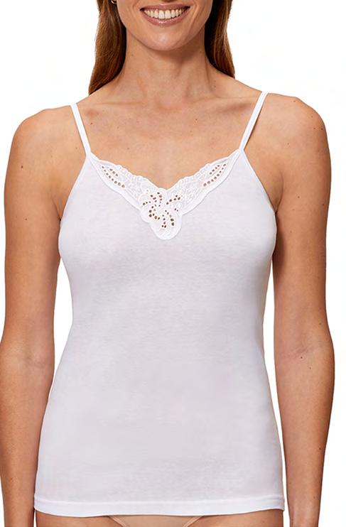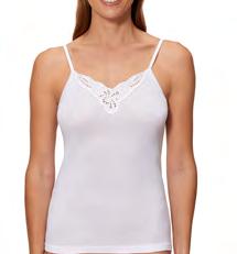 Camiseta de tirantes anchos realizada en 100% algodón, con detalle de encaje elástico en el escote, sin costuras laterales.