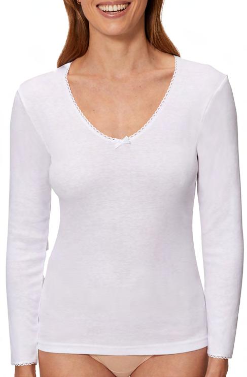 Camiseta de manga larga de la línea de invierno, en algodón/poliester. Suavidad y calidez. Detalles femeninos en el escote y las terminaciones de las mangas. Su corte entallado garantizan una silueta favorecedora.