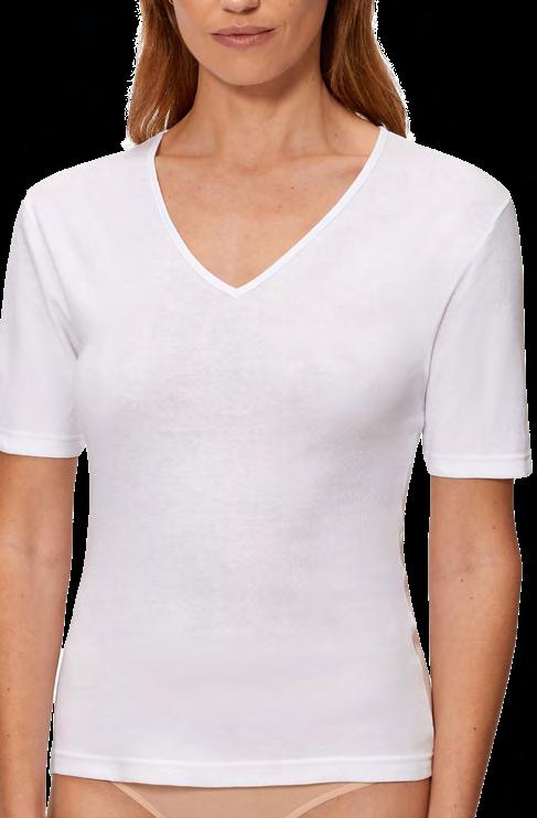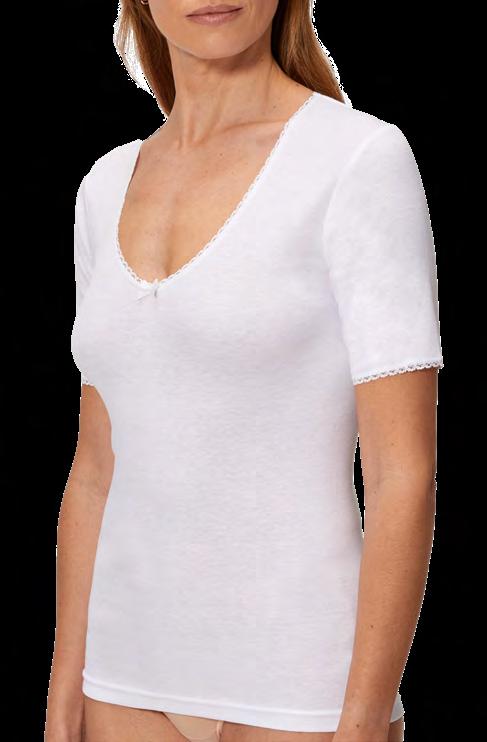 Camiseta de manga corta de la línea de invierno, en algodón/poliester. Suavidad y calidez. Detalles femeninos en el escote y las terminaciones de las mangas. Su corte entallado garantizan una silueta favorecedora.