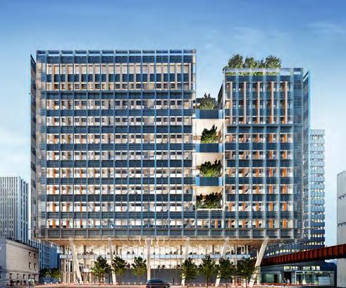A 13-story modern, sustainable office building (see Figure 10 and Figure 11), and design prioritizes adaptability, sustainability, and health, incorporating biodiverse green terraces, communal social areas, and a dedicated Wellness Wing with fitness facilities.