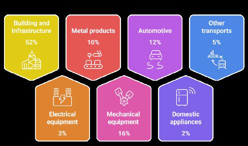 The steel use by sector is illustrated in Figure 1, showing that the construction sector entails more than 50% of the total use.