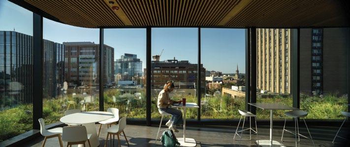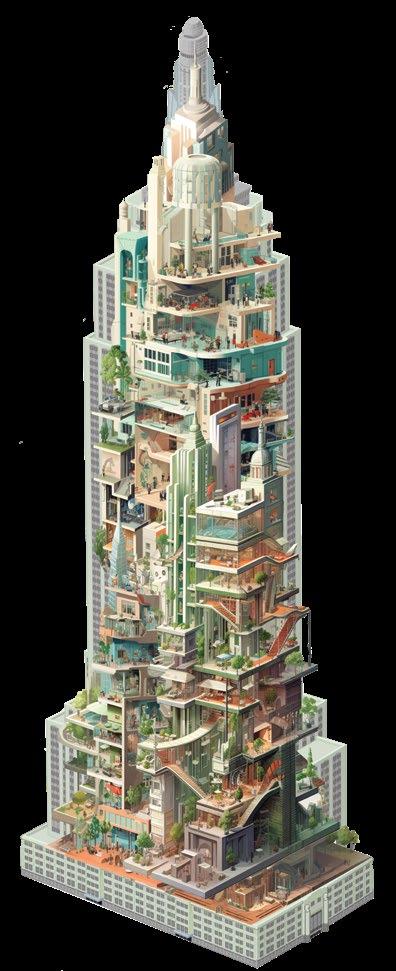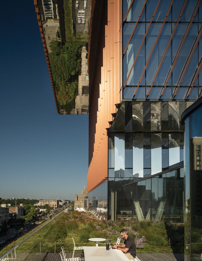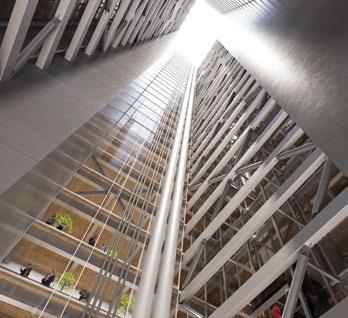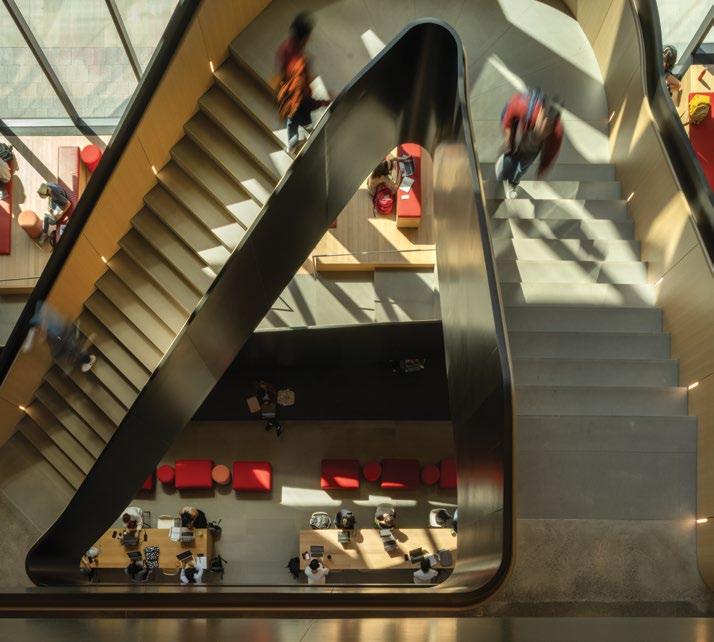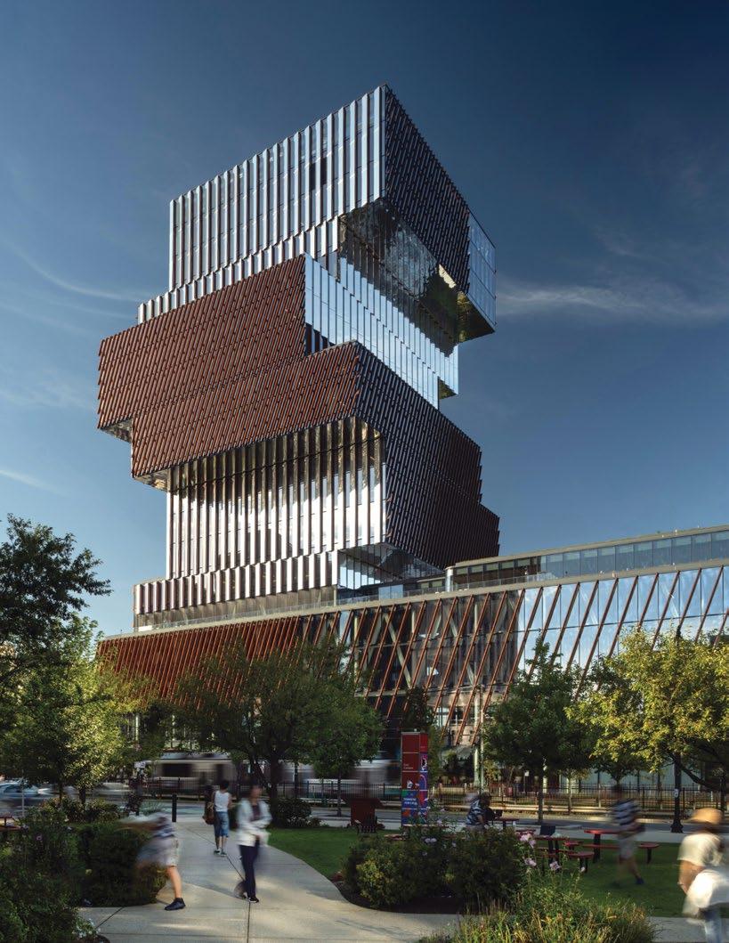 A contemporary take on vertical urbanism, using both interior drama and inviting exterior transparency, is found at the Duan Family Center for Computing & Data Sciences (p. 34). Rising boldly over the Charles River, its cantilevered forms and interconnected neighborhoods reimagine the modern campus as a vertical, collaborative environment. The building integrates education, sustainability, and urban life, proving that Portman’s vision of interactionrich vertical spaces is not only relevant but vital in addressing today’s challenges.