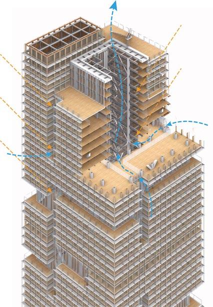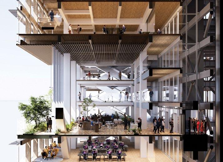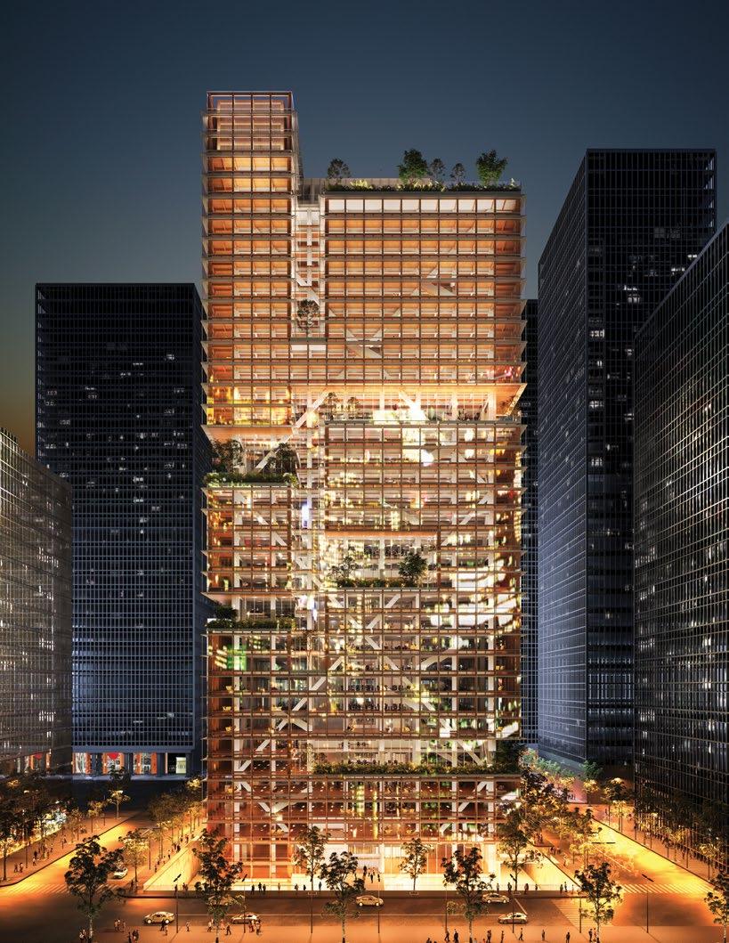 Potential for interaction is also key to our Tech feature, the future-focused “Regenerative Tree” prototype (p. 76), combined with adaptability and the latest advances in technology. By blending timber construction, biomimicry, and adaptable design, the project calculates a 40% reduction in carbon emissions across its lifecycle. Shared spaces spiral through the tower, ensuring that sustainability and sociability go hand in hand.