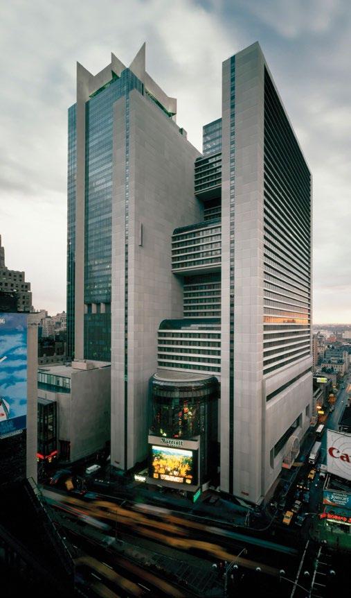 , we are always on the hunt for an image that offers a fresh perspective on the concept. This issue’s cover is a pivotal “blast from the past”—John Portman’s Hyatt Regency Atlanta Hotel (1967). The soaring interior atrium, with its glass elevators, provided a powerful new way to think about the tall building’s relationship with the city, in answer to two prevalent anti-urban trends at the time: suburban sprawl and cold, flat plazas surrounding insular high-rises. His designs, including that of the New York Marriott Marquis Hotel (1985), broke the rigid Miesian mold, giving birth to “vertical boulevards”—dynamic environments that blended architecture and urbanism. As Zaha Hadid Architects principal Patrik Schumacher notes (p. 104), Portman’s atriums became vibrant public places, inspiring generations of architects to think beyond the exterior appearance and floor-plate efficiency of the high-rise.