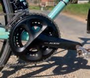 Carbon fibre has a better strength-to-weight ratio but you can’t beat a skinny-tubed steel frame for aesthetics, especially when nicely painted. The Light Blue’s frame is in fact relatively light; the main triangle is Reynolds 853 and the stays are 725. This Medium frame is 1.7kg and the whole bike weighs less than the disc-braked Ribble. The Light Blue’s top tube is long for a mediumsized frame, which means the front-centres