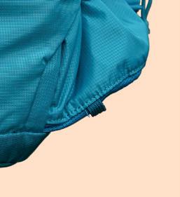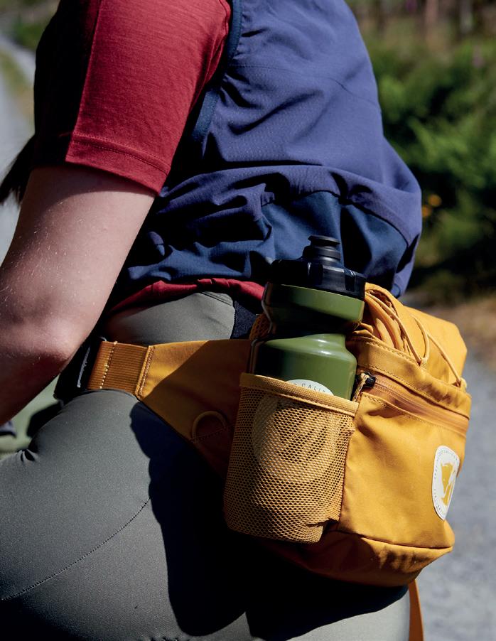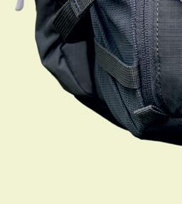 WHILE APIDURA’S OFFERING may be the slimmest on test with a 2.5-litre capacity, there’s still plenty of room for all your ride essentials from tools to snacks, though you may have to stow a jacket elsewhere. The wide hip strap is incredibly comfy, with a little stretch and a Velcro fixing secured with a compression strap. Apidura’s signature dark grey fabric has been seam taped for enhanced weatherproofing. Inside, a key clip is handy, and there’s a separate, padded pocket for valuables with a nifty chain-link-storage zipper pull. For comfortable storage on longer rides, the minimalist yet highly functional and durable Backcountry hip pack is hard to beat.