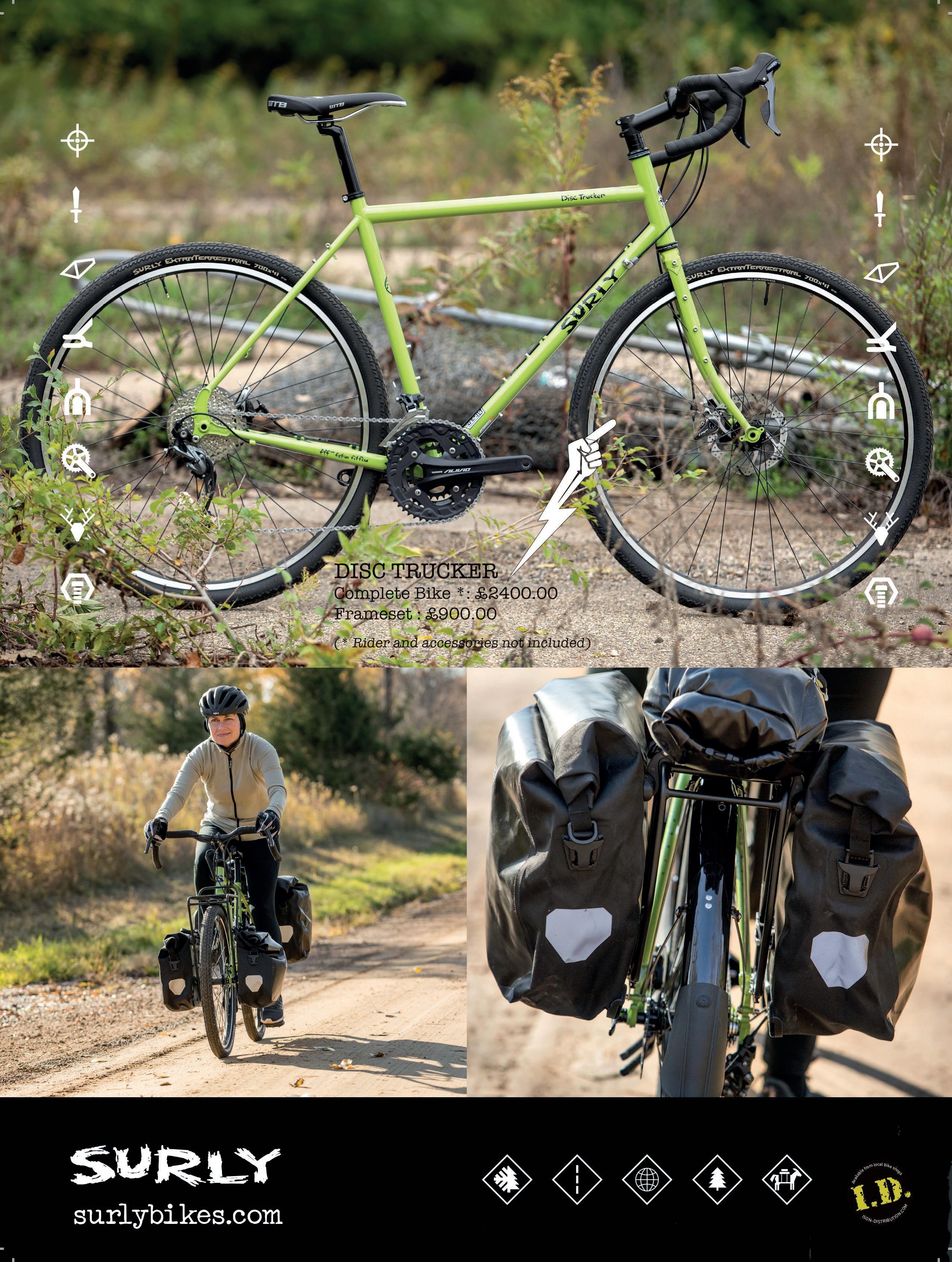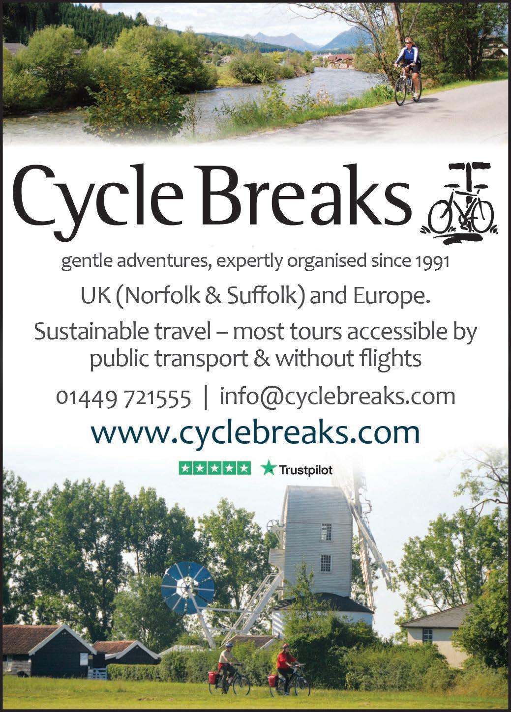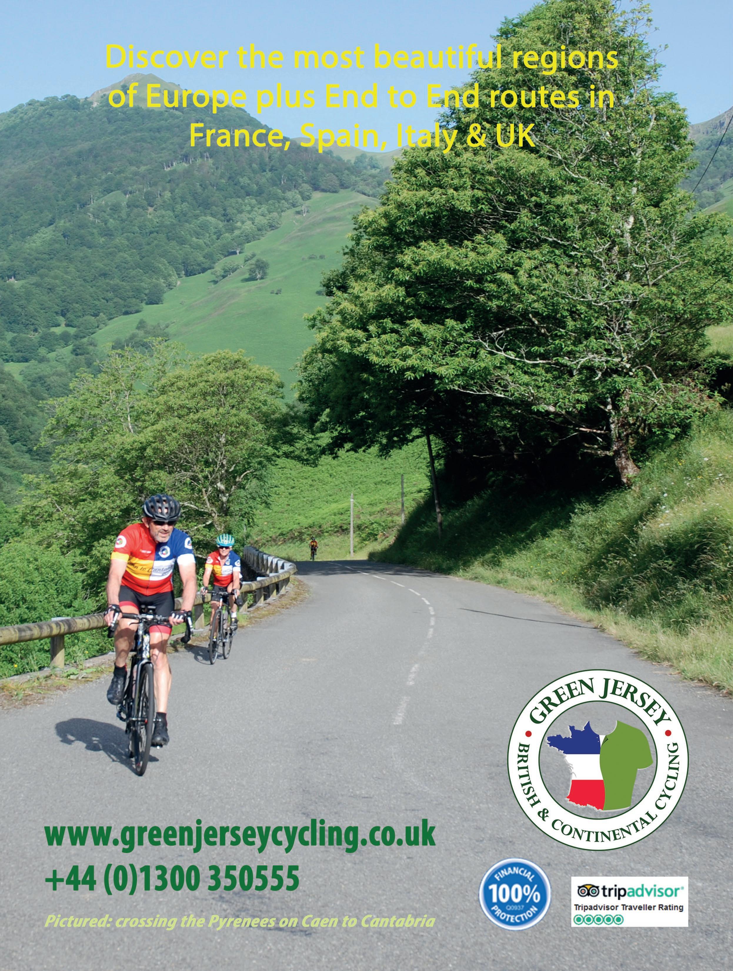 CYCLE MAGAZINE: Editor: Dan Joyce E: editor@cyclinguk.org Designer: Christina Richmond Advertising: Bevan Fawcett T: 0203 198 3092 E: bevan.fawcett@jamespembrokemedia.co.uk Publisher: James Houston. Cycle is published six times per year on behalf of Cycling UK by James Pembroke Media, 90 Walcot Street, Bath, BA1 5BG. T: 01225 337777. Cycle is copyright Cycling UK, James Pembroke Media, and individual contributors. Reproduction in whole or in part without permission from Cycling UK and James Pembroke Media is forbidden. Views expressed in the magazine are those of the individual contributors and do not necessarily reflect those of the editor or the policies of Cycling UK. Advertising bookings are subject to availability, the terms and conditions of James Pembroke Media, and final approval by Cycling UK. Printed by: Acorn Web Offset Ltd, Loscoe Close, Normanton Industrial Estate, Normanton, WF6 1TW T: 01924 220633