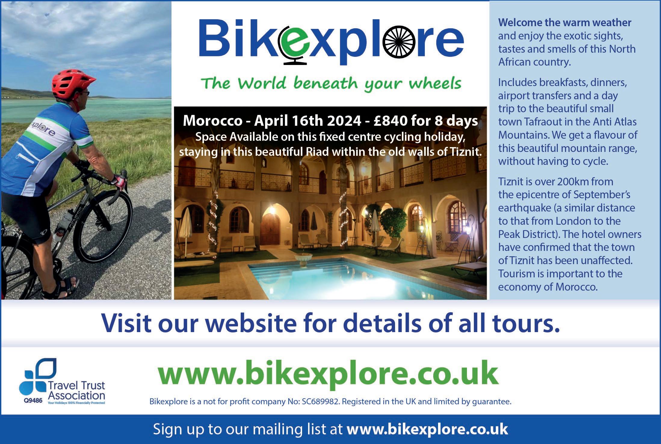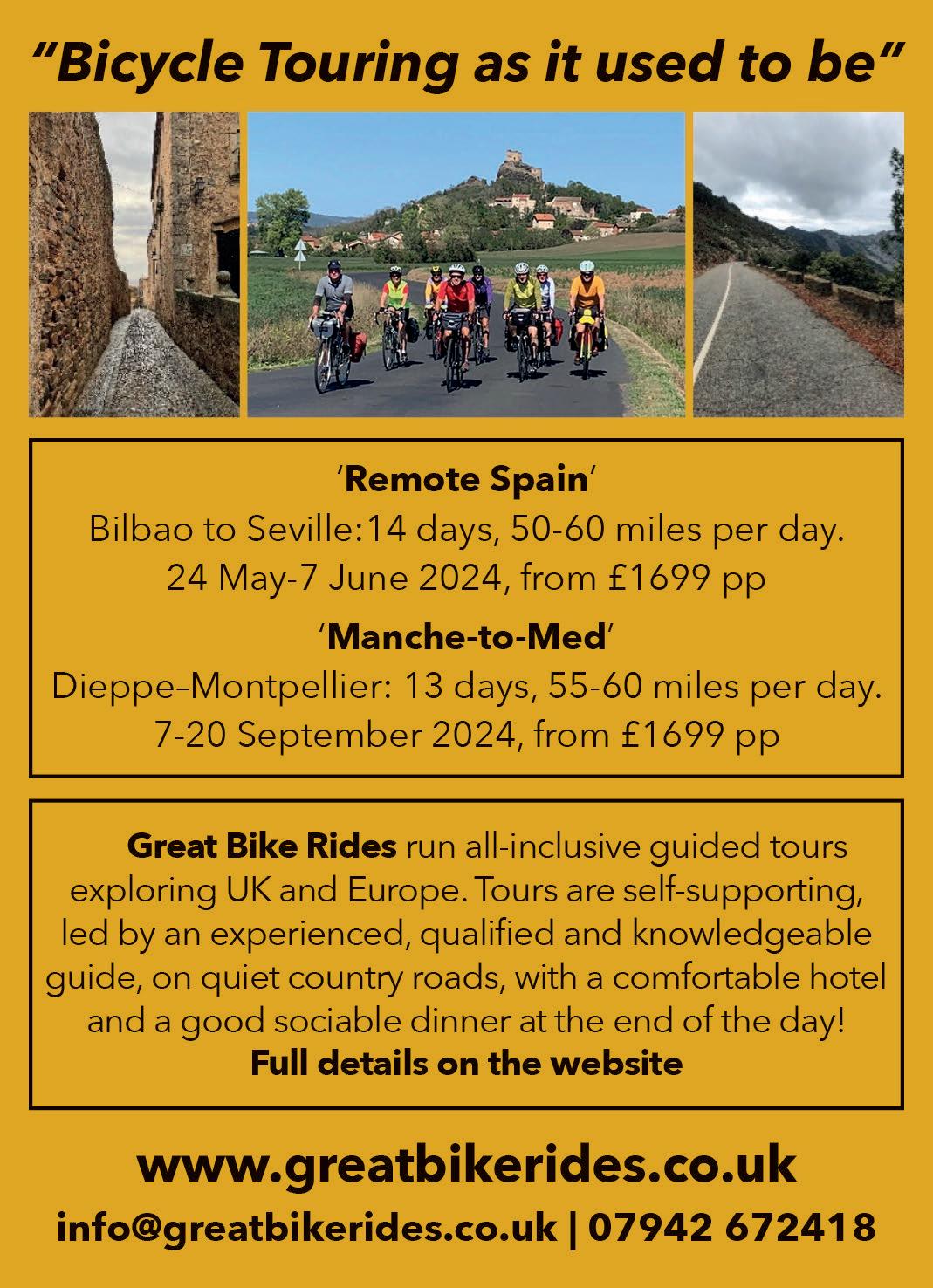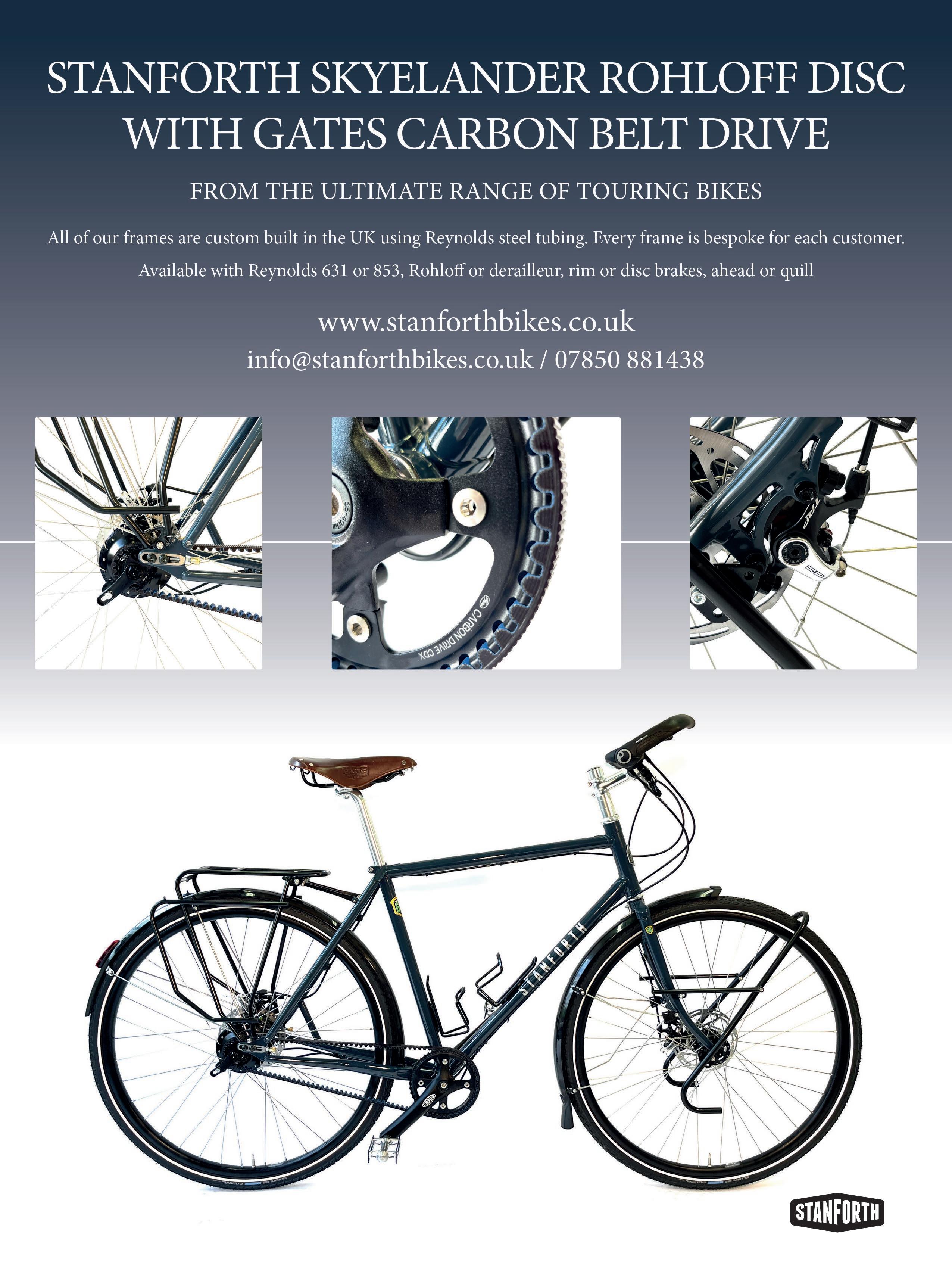 CYCLE MAGAZINE: Editor: Dan Joyce E: editor@cyclinguk.org Designer: Christina Richmond Advertising: Bevan Fawcett T: 0203 198 3092 E: bevan.fawcett@jamespembrokemedia.co.uk Publisher: James Houston. Cycle is published six times per year on behalf of Cycling UK by James Pembroke Media, 90 Walcot Street, Bath, BA1 5BG. T: 01225 337777. Cycle is copyright Cycling UK, James Pembroke Media, and individual contributors. Reproduction in whole or in part without permission from Cycling UK and James Pembroke Media is forbidden. Views expressed in the magazine are those of the individual contributors and do not necessarily reflect those of the editor or the policies of Cycling UK. Advertising bookings are subject to availability, the terms and conditions of James Pembroke Media, and final approval by Cycling UK. Printed by: Acorn Web Offset Ltd, Loscoe Close, Normanton Industrial Estate, Normanton, WF6 1TW T: 01924 220633
