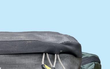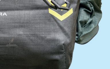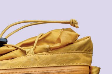 EXPANDING FROM A 4.5-litre capacity up to 11.5 litres, the top section of the hip pack can be unrolled and shoulder straps revealed to create a lightweight backpack. The cheerful yellow hip pack boasts an external bottle pocket on either side, as well as two internal mesh pockets to help keep your tools and snacks stowed neatly. A top bungee keeps the upper secured, and can also be used to carry a jacket. The comfortable fit is completed with an asymmetric buckle strap and a fairly breathable padded back panel. This clever, dual-purpose design will no doubt be a big hit with bikepackers stocking up on food before heading to camp.