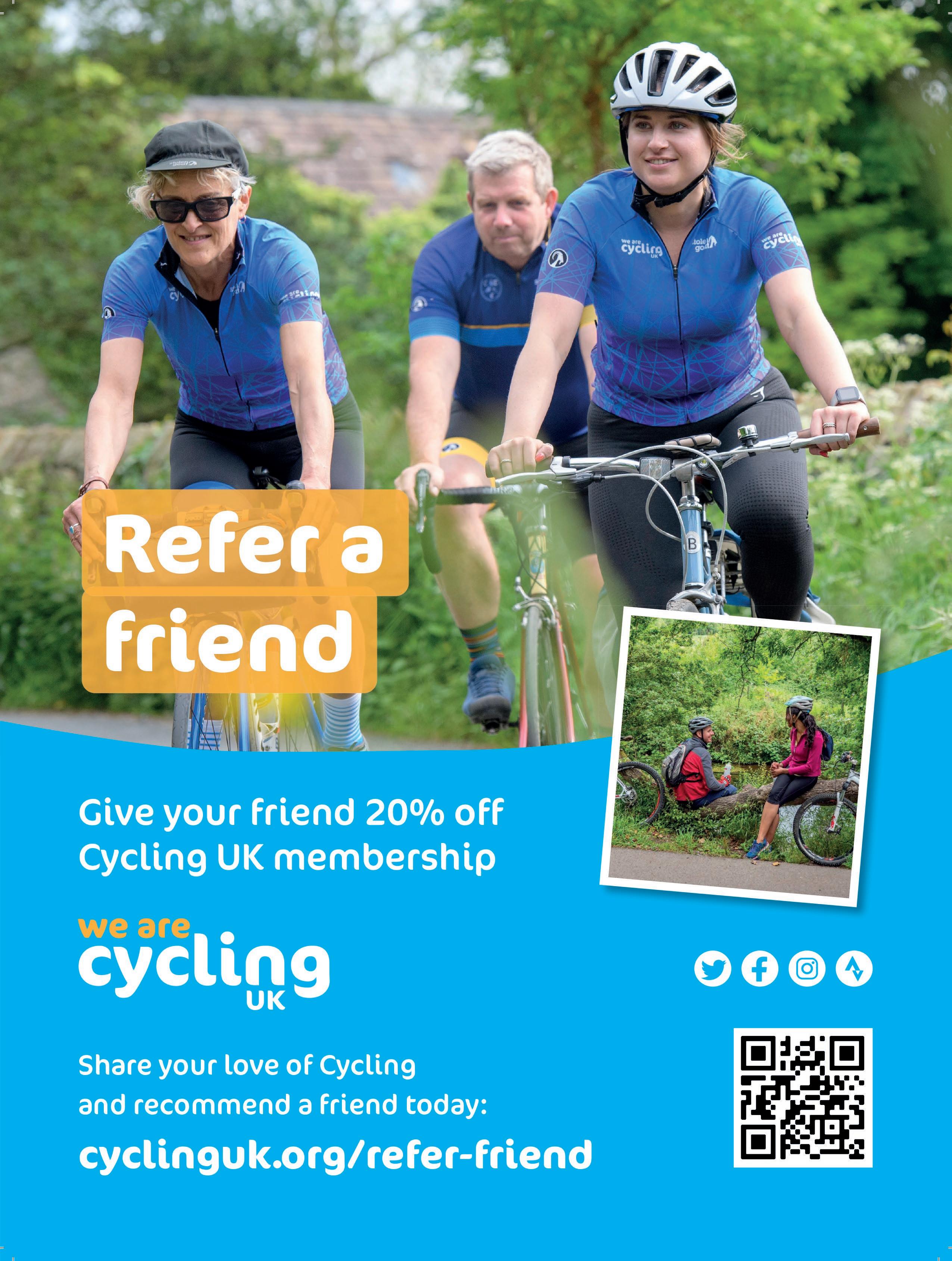 Over the past few months, I’ve been busy working with colleagues across Cycling UK to shape our new strategy, which will launch in 2024. At the moment we’re setting up some further opportunities to discuss our direction of travel with member focus groups and external stakeholders. It’s an exciting time and I look forward to sharing more with all our members and supporters in the next issue of the magazine.