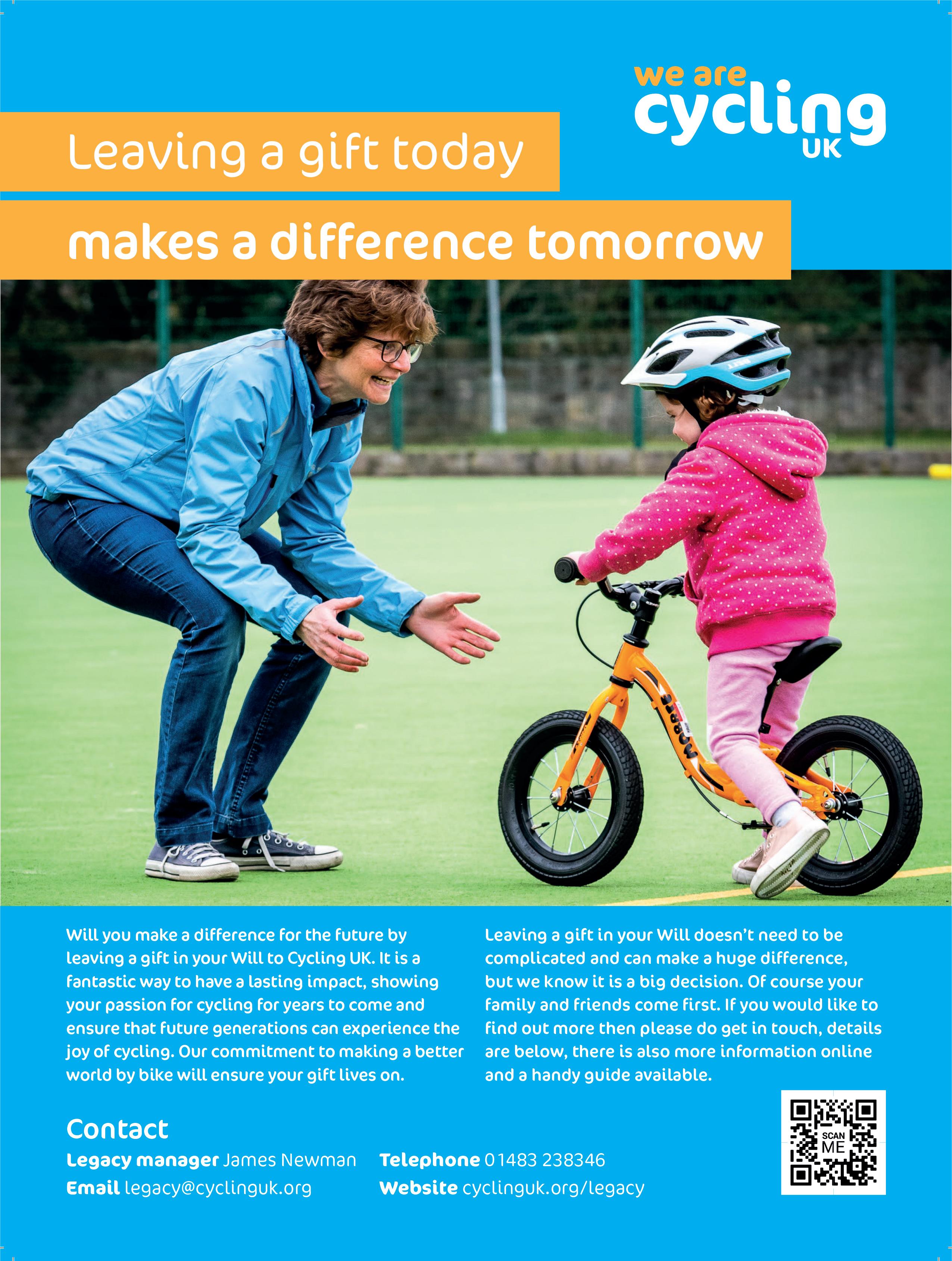 Be in the know on all things cycling related. If you’d like to hear more about Cycling UK’s work – our projects, training, campaigns and fundraising, and how you can get involved – sign up to hear more: cyclinguk.org/subscribe