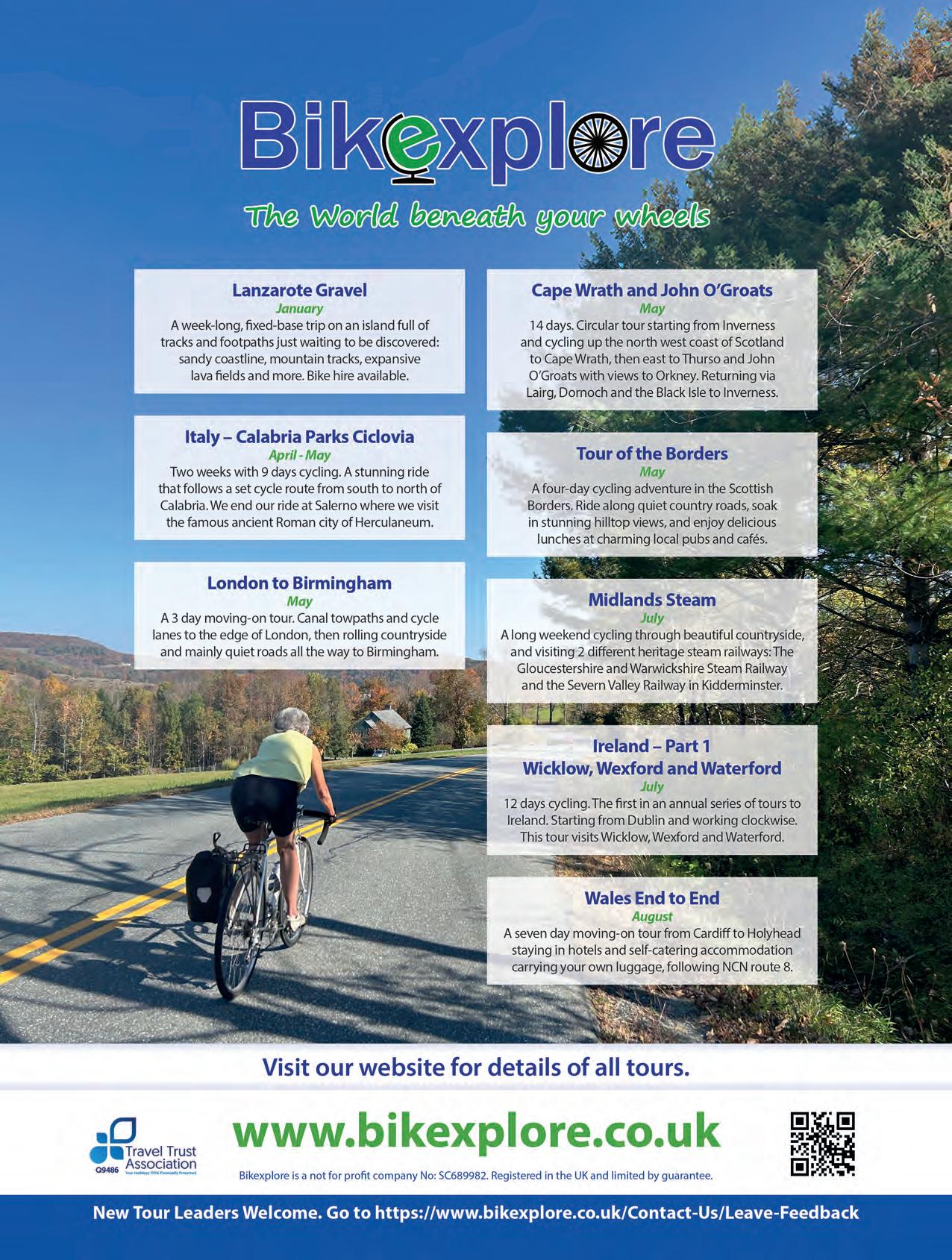 We’d love to hear your Travellers’ tales! Email: editor@ cyclinguk.org