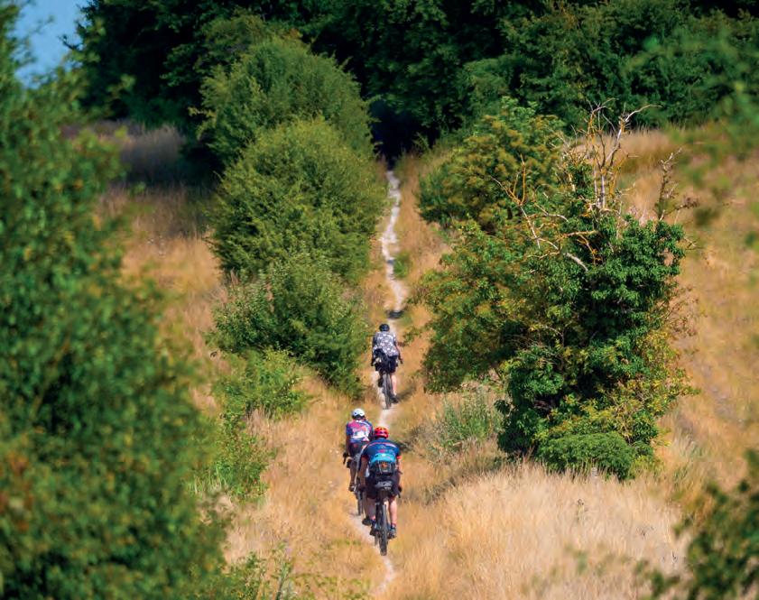 What do you always take with you when cycling? A GPS or phone so I can explore and record any new, interestinglooking trails. And a hard-boiled egg, with a little sachet of salt, as it’s my favourite trail food. Who mends your punctures? Me. I try to do all my bike maintenance. If you had £100 to spend on