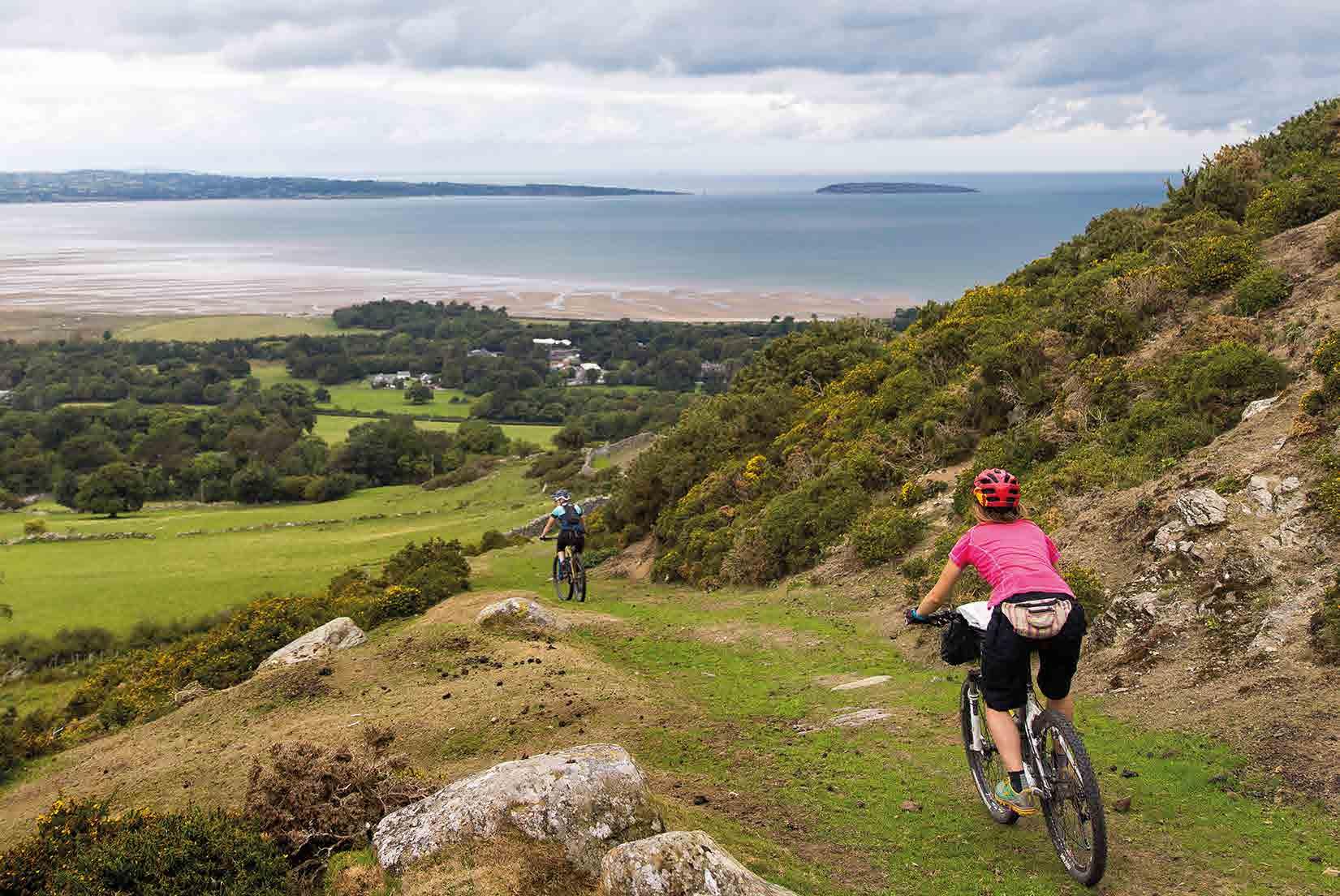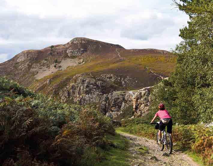 Watch out for sniper rocks on the singletrack as you drop down to the beauty spot of Sychnant Pass, with its visually spectacular and acoustically entertaining ‘Echo Rock’ volcanic outcrop. You glide down the road and then join a track which hugs the edge of the imposing Conwy Mountain, under the watchful eyes of not one but two ancient hill forts.