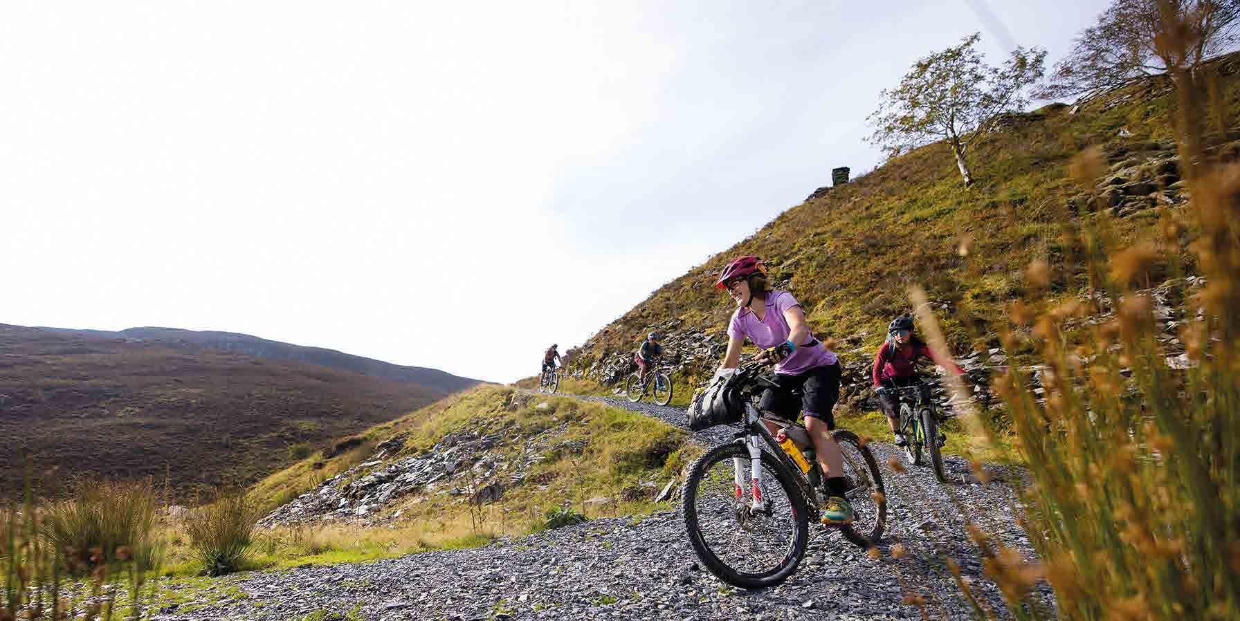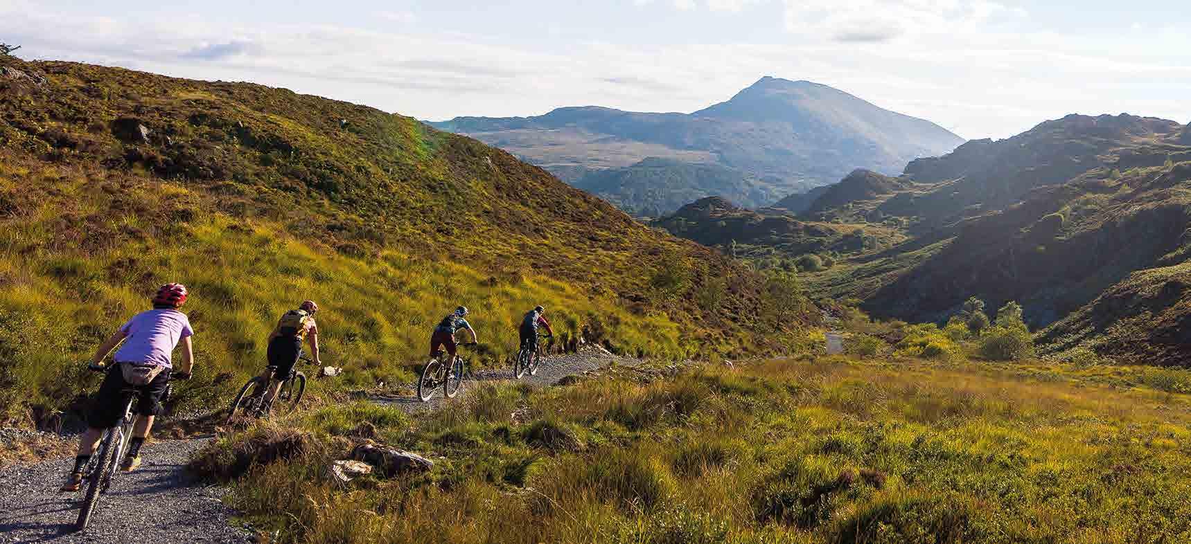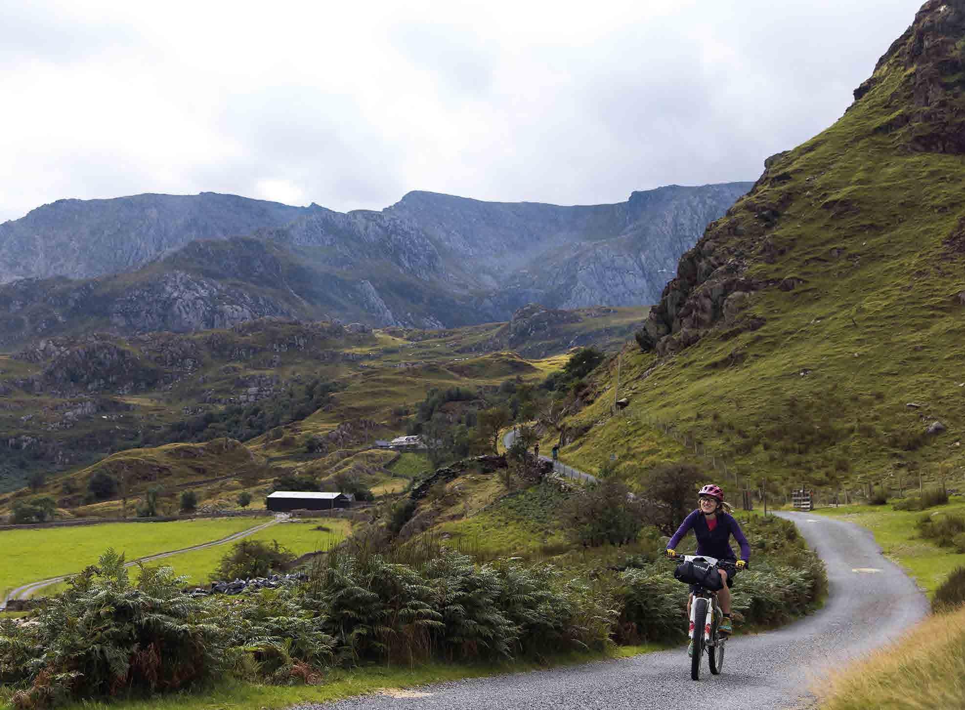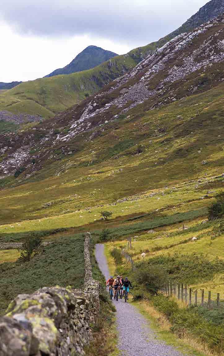 recommended for road, touring or hybrid bikes with limited gearing and/or narrow tyres. An electric bike will make the climbs easier, but plan ahead for recharging points as Eryri will drain your battery faster than most landscapes.